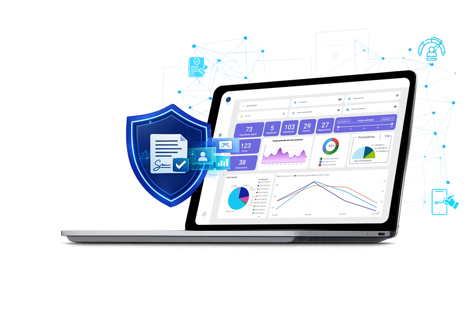 • Integración con sistemas ERP, CRM y plataformas de firmas externas.